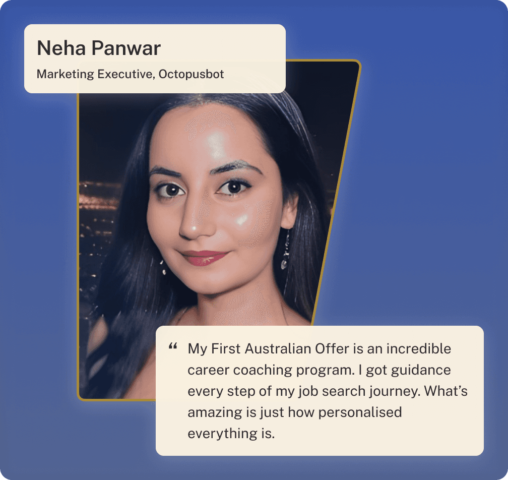 My First Australian Offer is a job search coaching program that has helped 300+ international students and first gen immigrants by providing personalised coaching and community support to get hired in Australia.