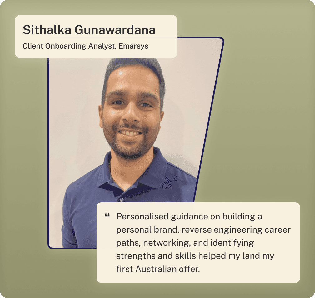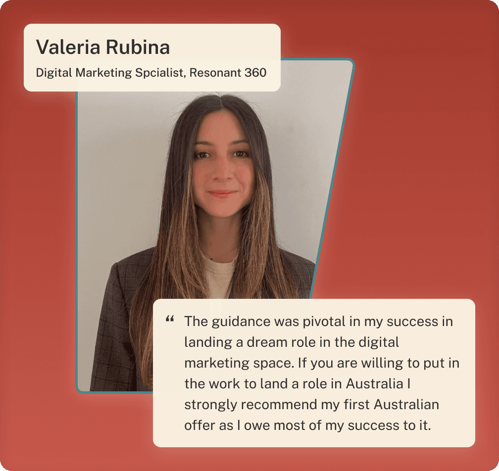 Everything inside the program and community is designed with one clear outcome in mind: helping you land a full-time role in Australia that you’re proud to say yes to.